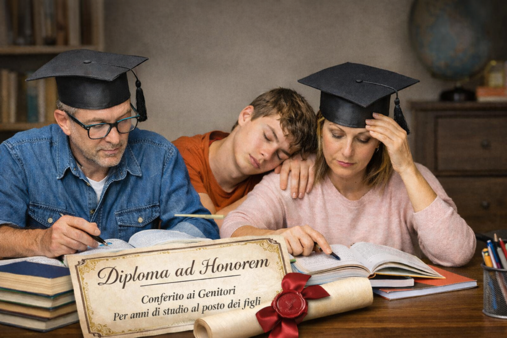 È da qui che nasce il diploma dei genitori, ad honorem: un percorso non scelto, ma reso necessario dalla mancata autonomia dei figli e dalla carenza di risposte educative adeguate, al punto che molti genitori, arrivati alla fine del percorso scolastico, avrebbero ormai le competenze per sostenere gli Esami di Stato insieme ai figli.